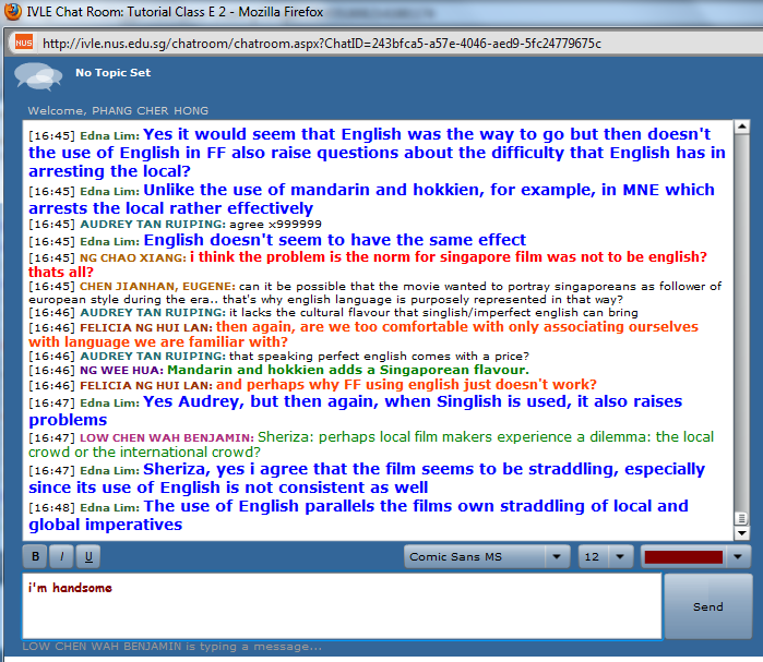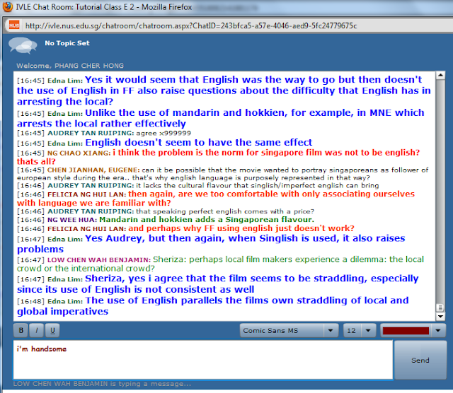 Boy, i sure do hope the virus decides to leave fast though. Judging by how my first E-Learning tutorial went, i think i might be scoring a lot of 0s for my participation marks. Perhaps i should have just gone ahead with saying "I'm handsome" when i felt like it. At least it shows that i've participated.