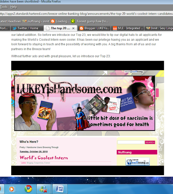 When Standard Chartered Bank announced today the Top 23 shortlisted candidates for one of the most coolest internship job ever with SGD 30 000 as a remuneration, lukeyishandsome.com is one of the pages sitting right there on the Top 23 list!