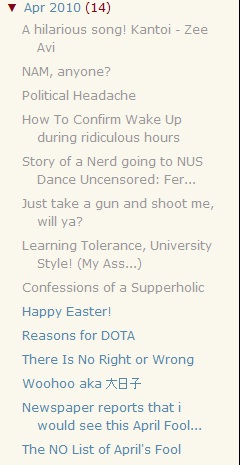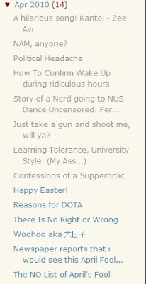 If this were to be allowed on, the addiction would probably screw my life up because for each moment spent blogging is one moment less spent on chasing pretty girls or studying. Heck, i must even start remembering that i'm a full time student, not a full time blogger.