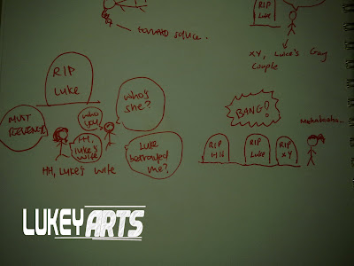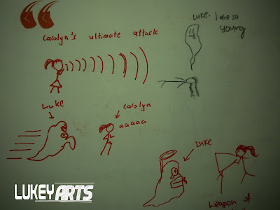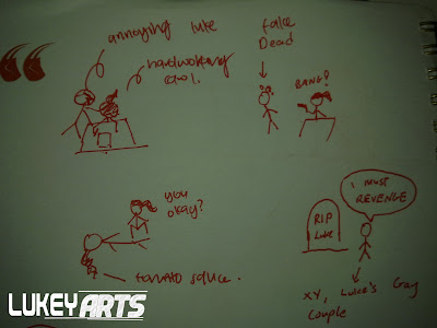 Carolyn and i were quite bored before the show started so we decided to show off our drawing skills by drawing "stick people" with a storyline.