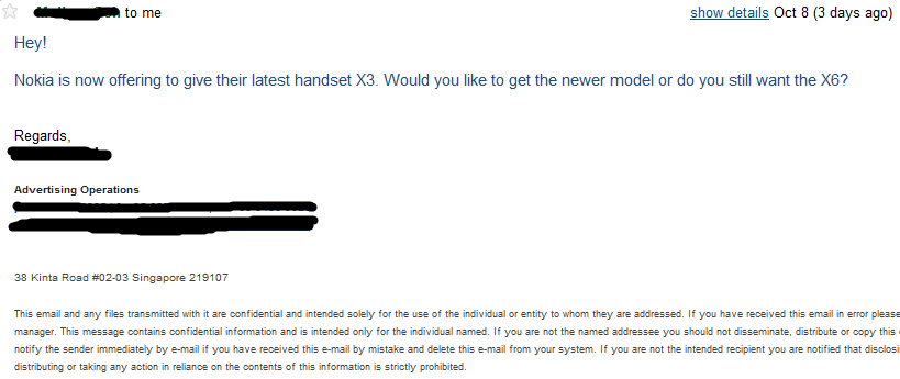 Okay, i have to first clarify that i have zero knowledge of phones when i replied that email. And i fully trusted this person who sent me this email that Nokia was indeed being kind hearted enough to give me a better gift. Only after i did a Google search and ask opinions from Facebook did i realize that the latest handset isn't that latest after all.