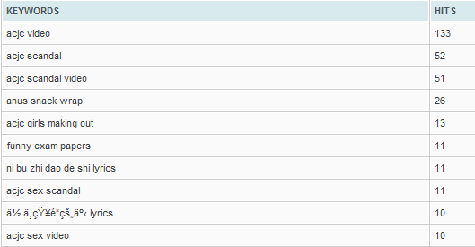 The most popular keywords searches for my blog, with the ACJC scandal keywords making up most of it |