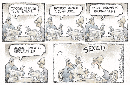 haha... quite true. Lucky I'm no feminist. Yes, I do think women can do MOST (not all) of the work that men do just as efficiently and some, even more efficient but I don't believe all of this gender equality bull. FAIR does not equal to EQUALITY. As long as people have what they can handle and fulfill their full potential, and achieve what they deserve, who cares if it's equal or not. people should really just realize that already.