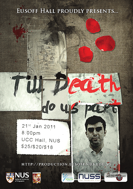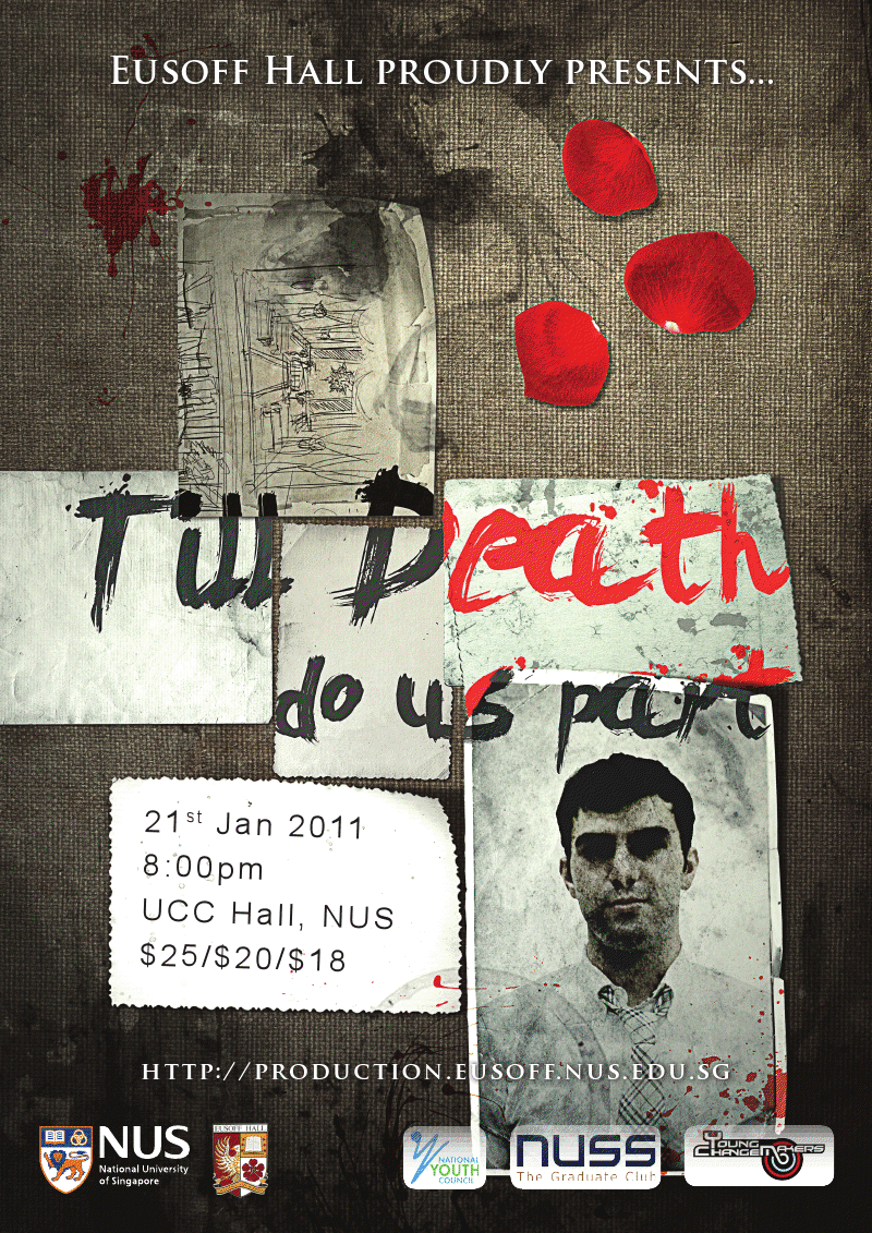 Murder! The baffling death of Bradley Becker - a prominent figure, has taken the media by storm. Could it have been his betrayed friend turned rival, scorned lover or hysterical wife? Join us as we unravel the truth in Eusoff Hall's 21st Production - Till Death Do Us Part.