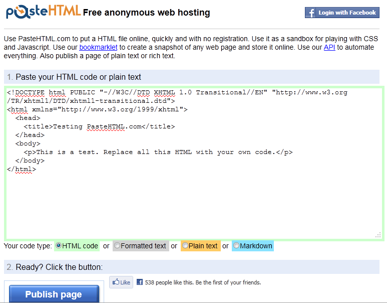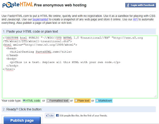 and a click to pastehtml.com reveals this web page: