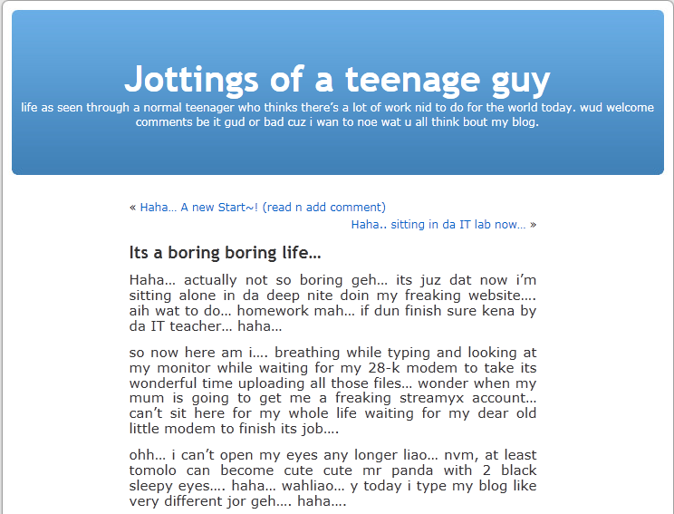 And so, at the age of 15, the little boy created his first blog on Frienster and naming "Jottings Of A Teenager". And like anyone would do, he blogged.